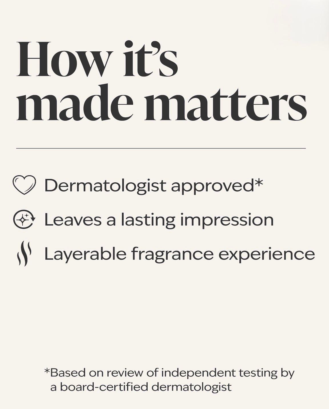 Leaves a lasting impression. Creates a layerable fragrance experience. The truest way to fragrance. Designed for great coverage.