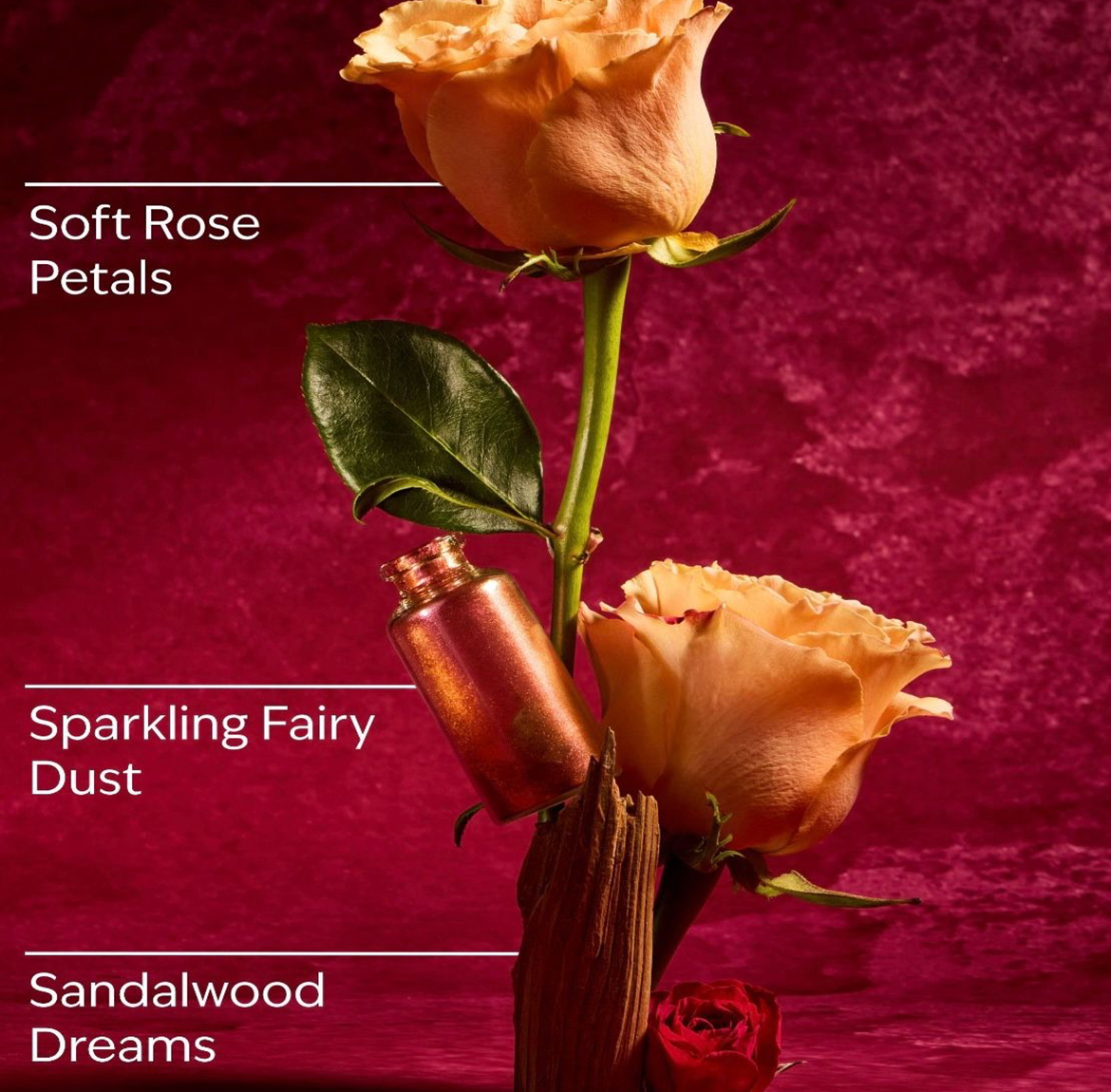 Dreams wait beyond the gates. There’s so much to explore and so many friends to be made—if you keep your heart open. This lovely fragrance embodies Aurora’s kind, thoughtful nature by combining playful petals with sweet sandalwood and a dash of optimism. Fragrance notes: soft rose petals, sandalwood dreams and sparkling fairy dust.