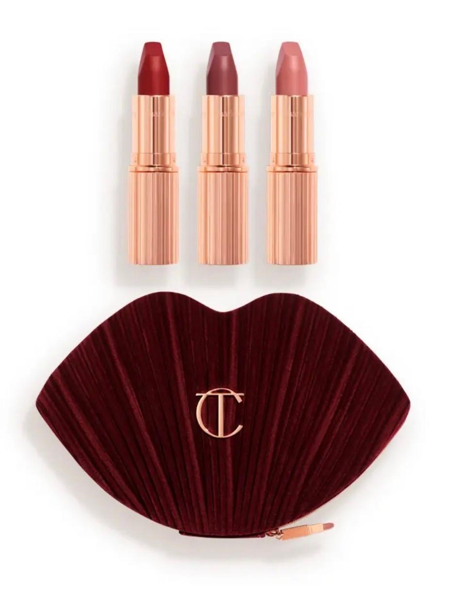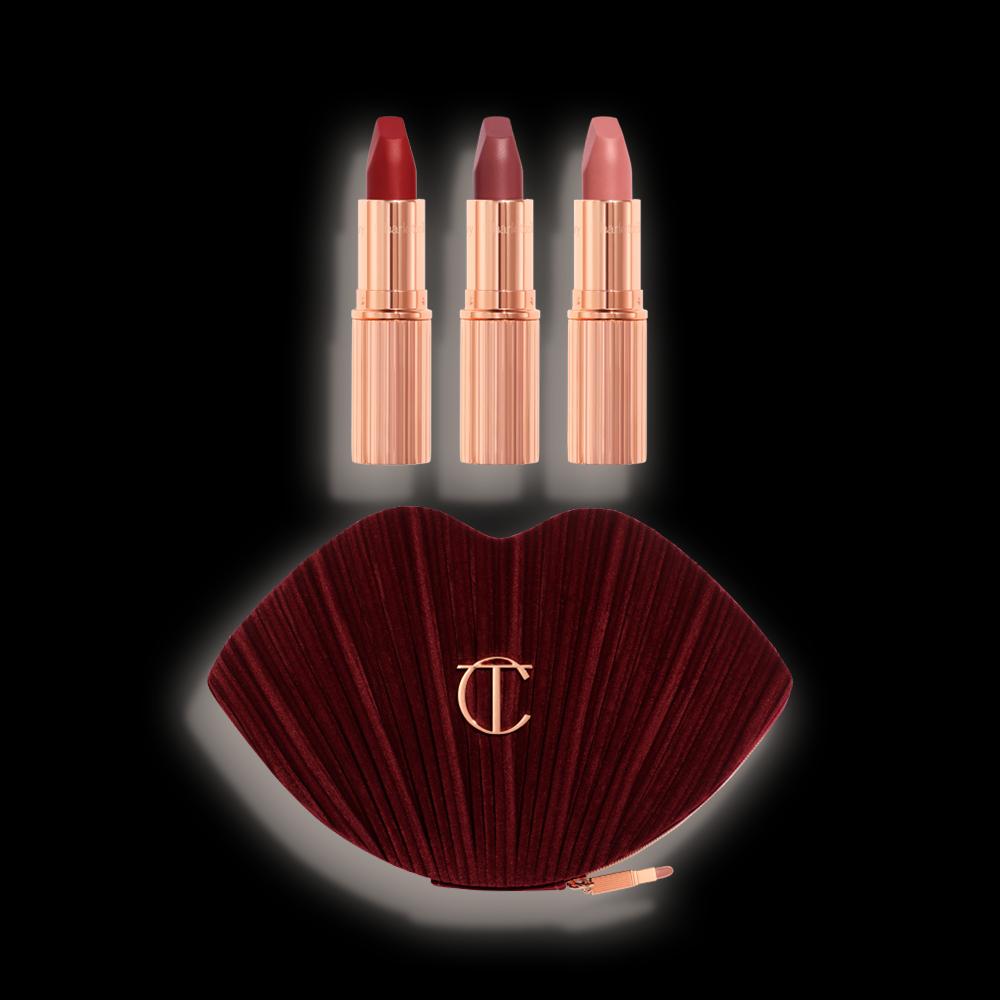 Indulge in the ultimate lip wardrobe with this curated trio of iconic shades from Charlotte Tilbury. Designed to suit every mood and occasion, each lipstick delivers rich, luminous color with a flawless, luxurious finish.