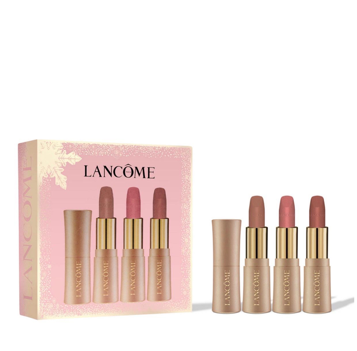 Gift Set features Lash Idôle Mascara and two comfortable lipsticks for all-day wear. L’Absolu Rouge Cream is enriched with 30% moisturizing rose balm and hyaluronic acid to provide lips with up to 18 hours of comfort and 8 hours of hydration. The ultra-creamy lip formula glides seamlessly over the lips and sets to a smudge-resistant color with no bleeding into the lip line.