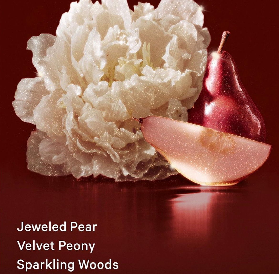 * Notes: jeweled pear, velvet peony, sparkling woods