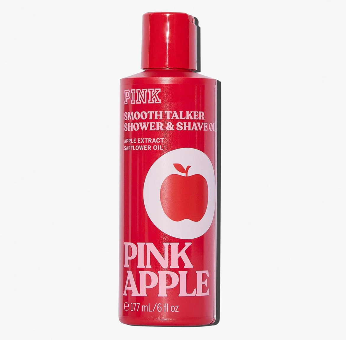 Victoria’s Secret PINK Apple Smooth Talker Shower & Shave Oil is a 2-in-1, apple-scented, vegan cleanser and oil that transforms into a creamy foam for a close shave. It is dermatologist-approved, formulated with safflower oil and apple extract, and designed to leave skin soft and hydrated.