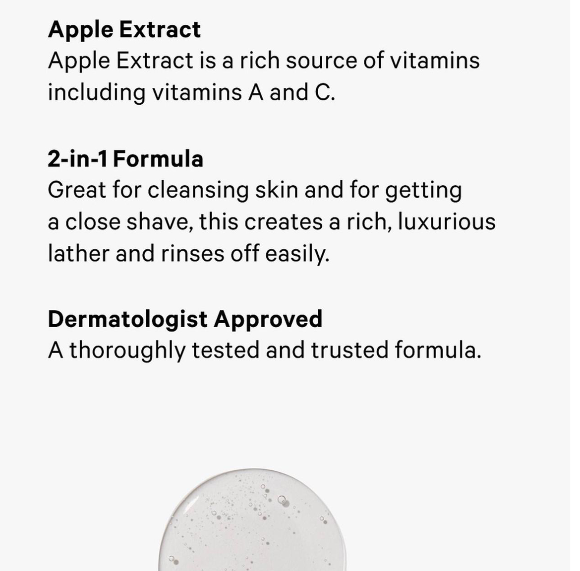 * Usage: In-shower use to cleanse and shave; rinses off easily.