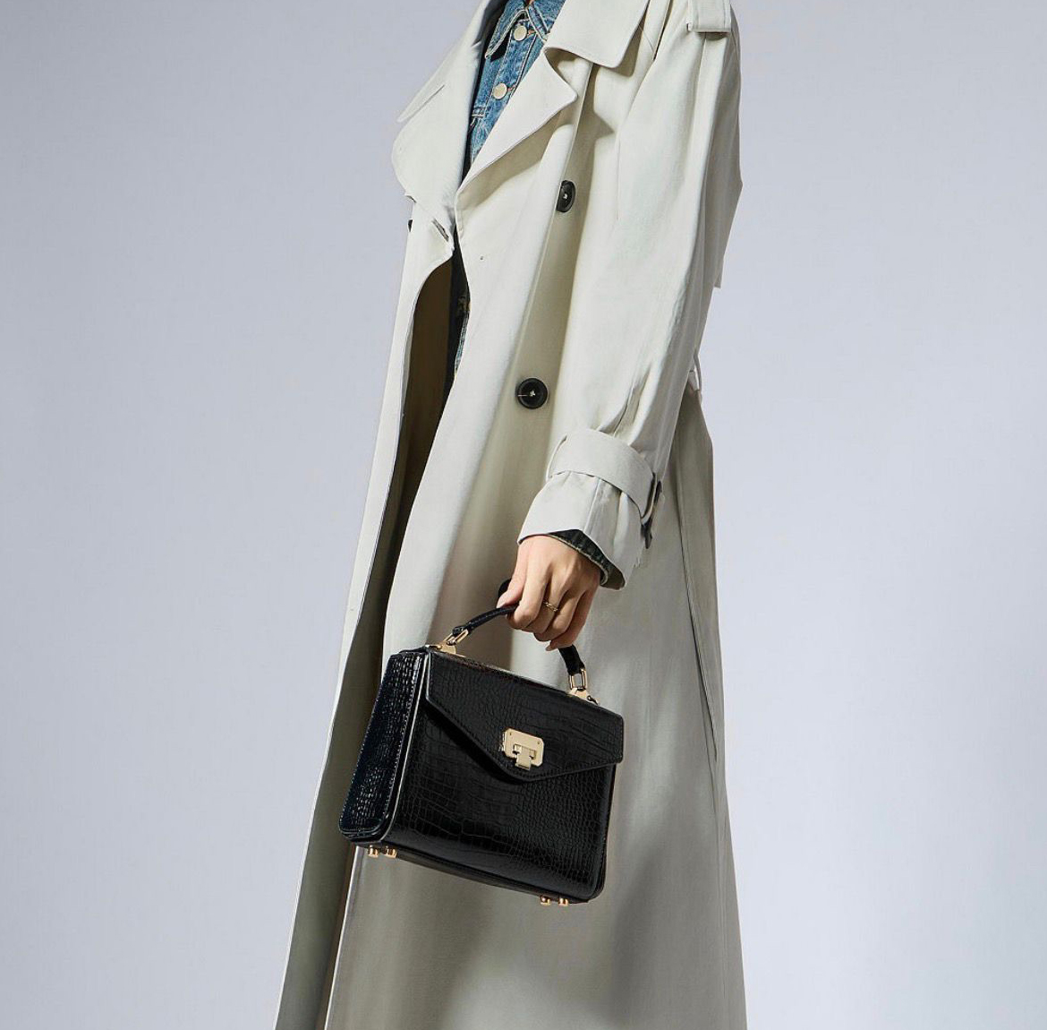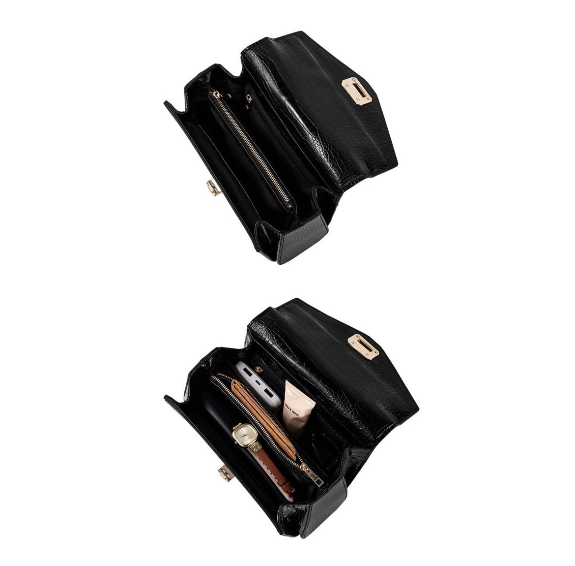 Elevate your style with this chic crocodile – embossed bag. Luxurious texture meets elegant gold – tone hardware, including a statement lock and handle attachments. Gold – toned feet protect the base, ensuring durability.