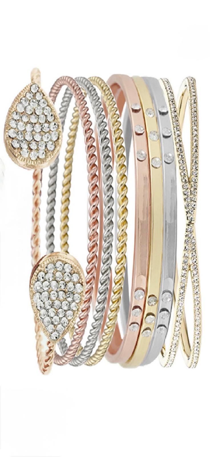 This Jessica Carlyle watch and stackable bangle bracelet set is the perfect way to add a little something extra to any look. Wear the watch solo or stack it up for bonus style and sparkle.
