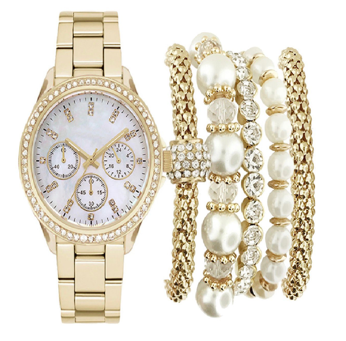 * Includes 5 crystal and imitation pearl bracelets