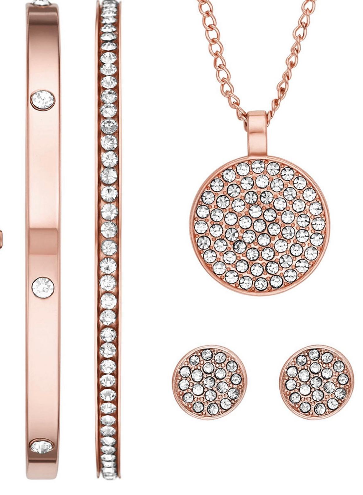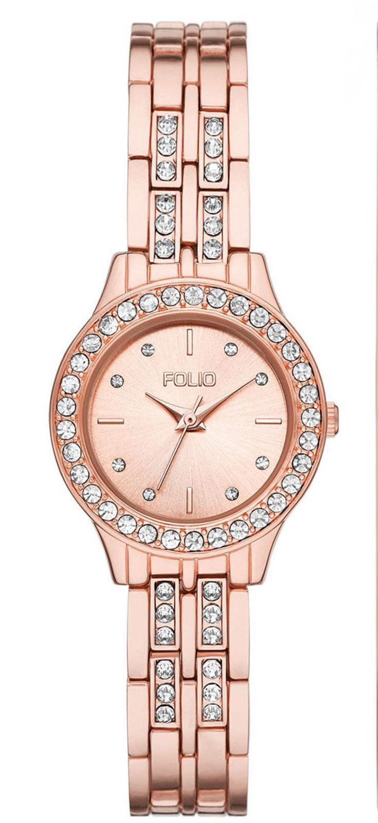 This Folio watch set adds a special touch to any outfit and includes a 27mm rose gold-tone watch and coordinating rose gold-tone bracelet, earring, and pendant accessories.